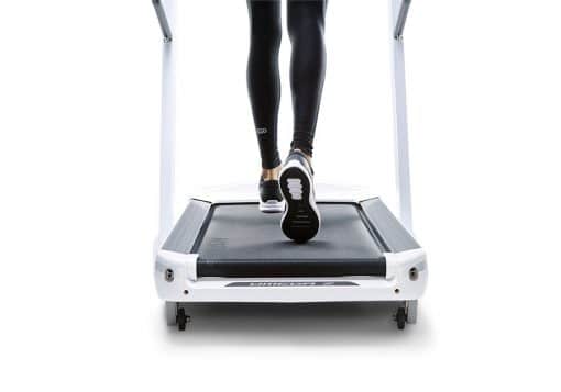 La superficie di corsa da 140 x 53 cm è spaziosa e confortevole, mentre il sistema Variable Response Cushioning garantisce un’ammortizzazione a tre zone differenziate per il massimo comfort durante la corsa. Il motore Johnson Drive System da 3.0 HP assicura una velocità fluida e silenziosa, regolabile da 0,8 a 20 km/h, con inclinazione elettronica fino al 12%.