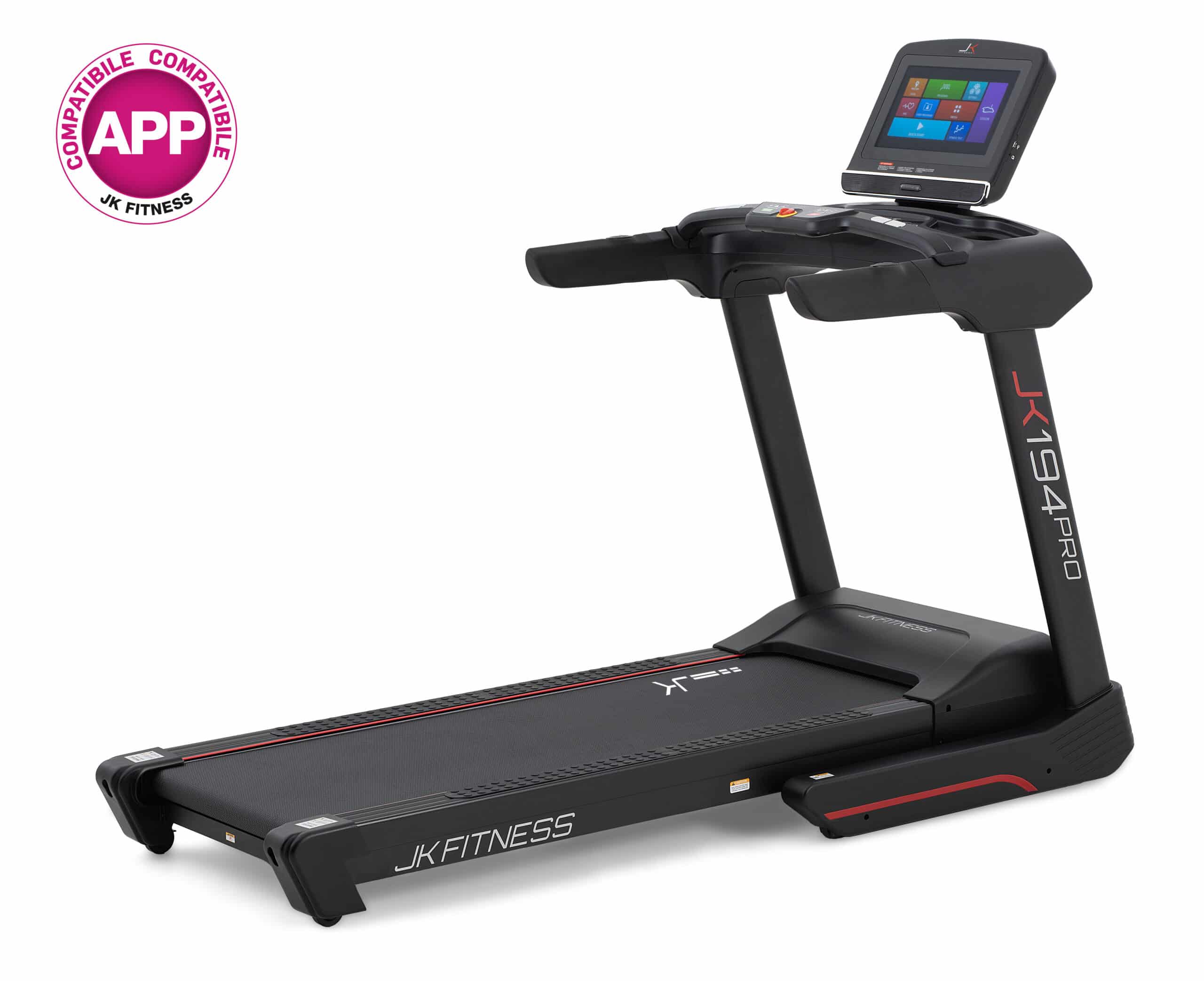Il JK 194 PRO è il tapis roulant top di gamma JK Fitness progettato per chi pretende prestazioni elevate, massima fluidità di corsa e un’esperienza di allenamento immersiva. La sua combinazione tra motore AC, superficie extra-large e console multimediale lo rende uno dei modelli più avanzati per l’home fitness intensivo.