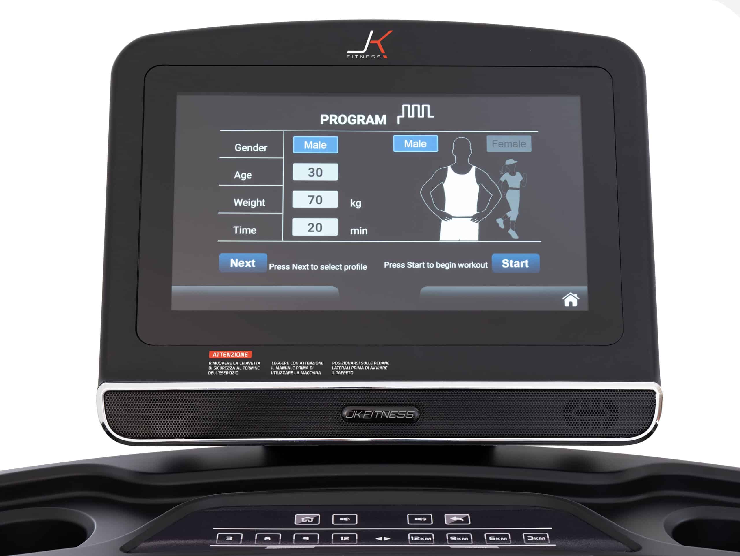 Il JK 194 PRO raggiunge una velocità massima di 22 km/h, regolabile con incrementi precisi di 0,1 km/h: ideale per allenamenti di lunga durata, HIIT o preparazione atletica avanzata.