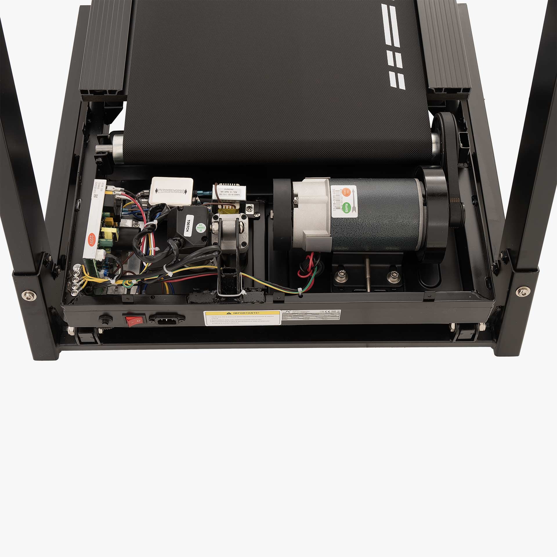 Il tapis roulant monta un motore DC da 2.5 HP (3.5 HP di picco), garanzia di affidabilità, silenziosità e consumi ridotti. La regolazione della velocità avviene con incrementi di soli 0,1 km/h, permettendo di trovare facilmente il ritmo ideale sia per camminate che per sessioni di corsa continua. La velocità massima raggiungibile è di 18 km/h, un valore nettamente superiore alla media della categoria domestica richiudibile, rendendolo adatto anche a utenti sportivi e allenamenti intervallati ad alta intensità (HIIT).