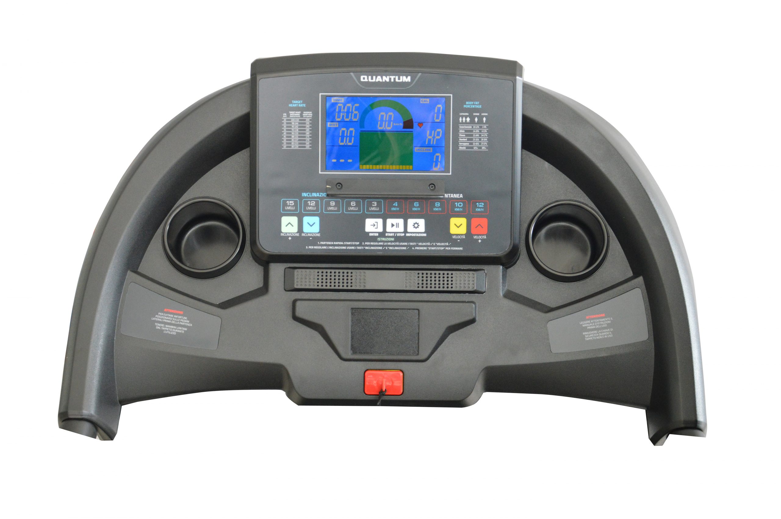 L’ottima console ha un display con tasti simili a touchpad e da questa è possibile controllare i dati di allenamento (tempo, distanza, velocità, calorie e pulsazioni). Tramite fascia cardio (non inclusa) è possibile rilevare in maniera più accurata le pulsazioni.
