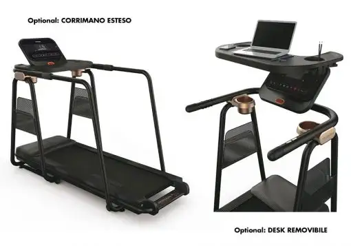 La superficie di corsa è ampia, misura infatti 46 x 127 cm, è dotata di un nastro antiscivolo ed ammortizzata tramite elastomeri per assorbire un’elevata percentuale dell’impatto.