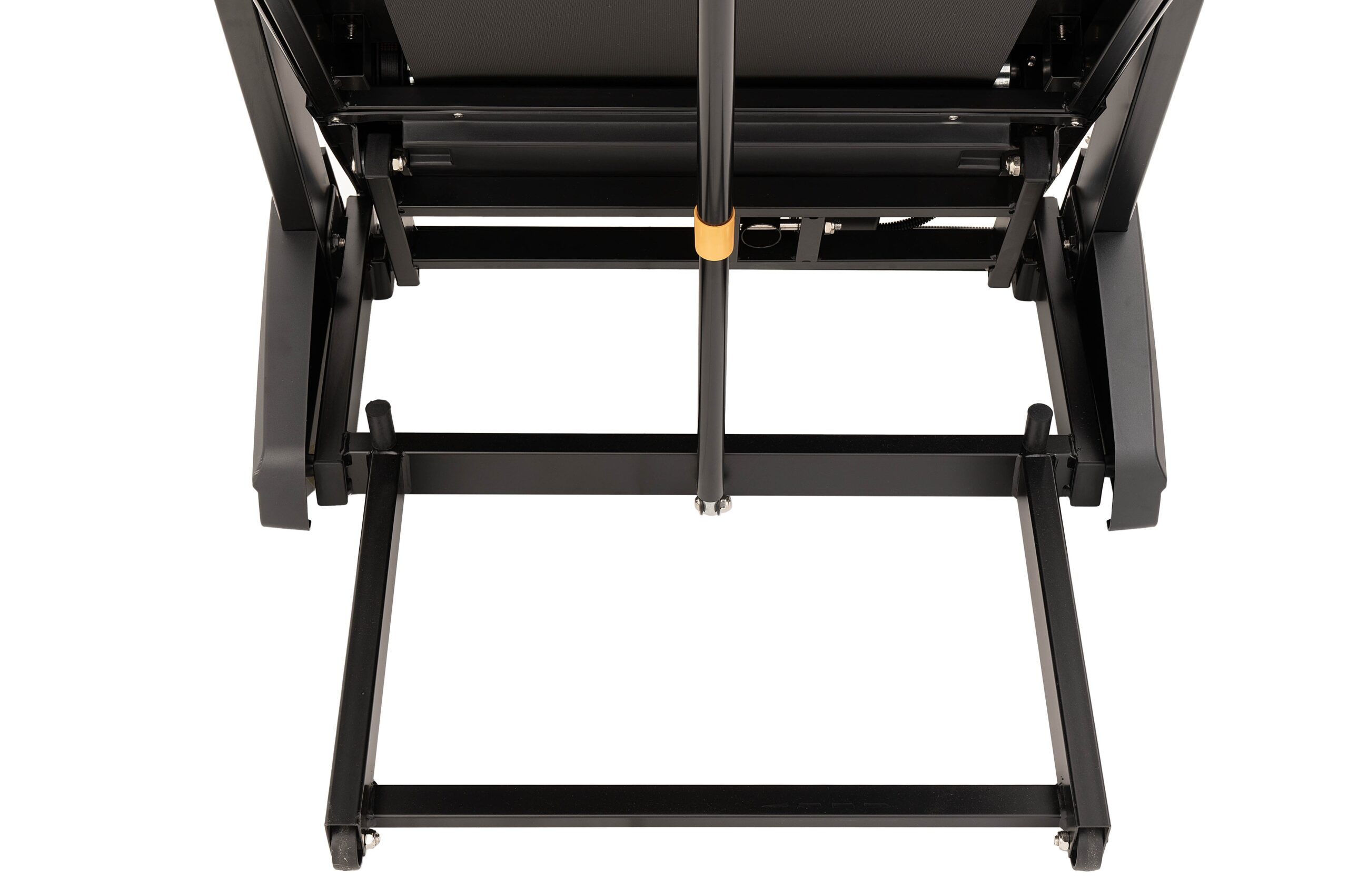 Una volta terminato l’allenamento, il sistema di chiusura permette di ridurre l’ingombro e spostare l’attrezzo facilmente grazie alle ruote di trasporto integrate.