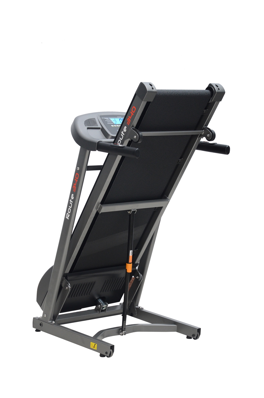 Il tapis roulant GetFit Route 345 è richiudibile e si può spostare facilmente grazie alle due ruote che si trovano sulla base.
