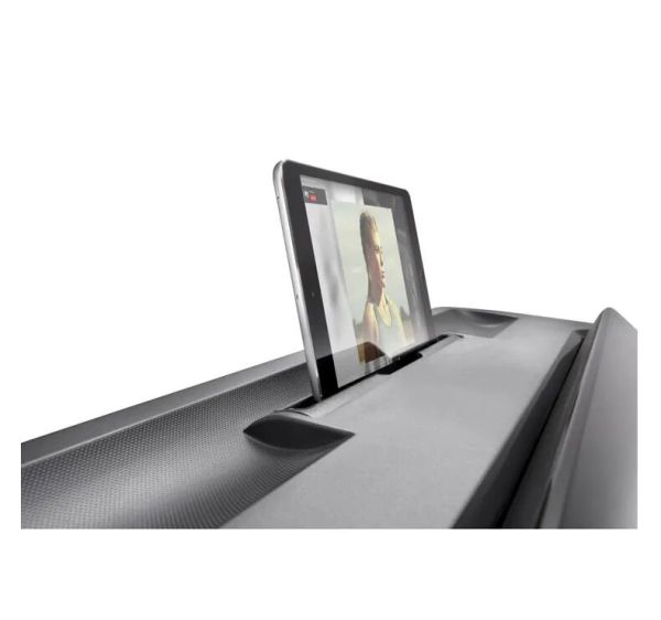 La console con display LED touchscreen mostra velocità, tempo, distanza, calorie, inclinazione e frequenza cardiaca. I sensori hand pulse e gli altoparlanti integrati permettono di monitorare le pulsazioni e godere di musica o contenuti multimediali durante l’allenamento.