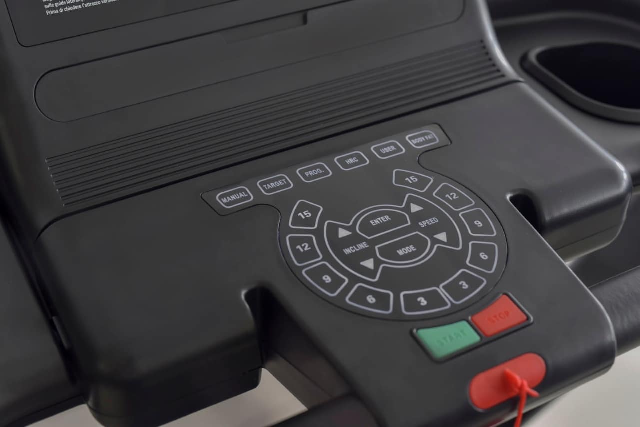 Il tapis roulant è dotato di un display LCD retroilluminato che mostra in tempo reale tempo, distanza, velocità, calorie, pulsazioni e programma attivo. La frequenza cardiaca può essere rilevata tramite i sensori manuali Hand Pulse oppure in maniera più precisa grazie alla fascia cardio inclusa, collegata al ricevitore wireless integrato.
