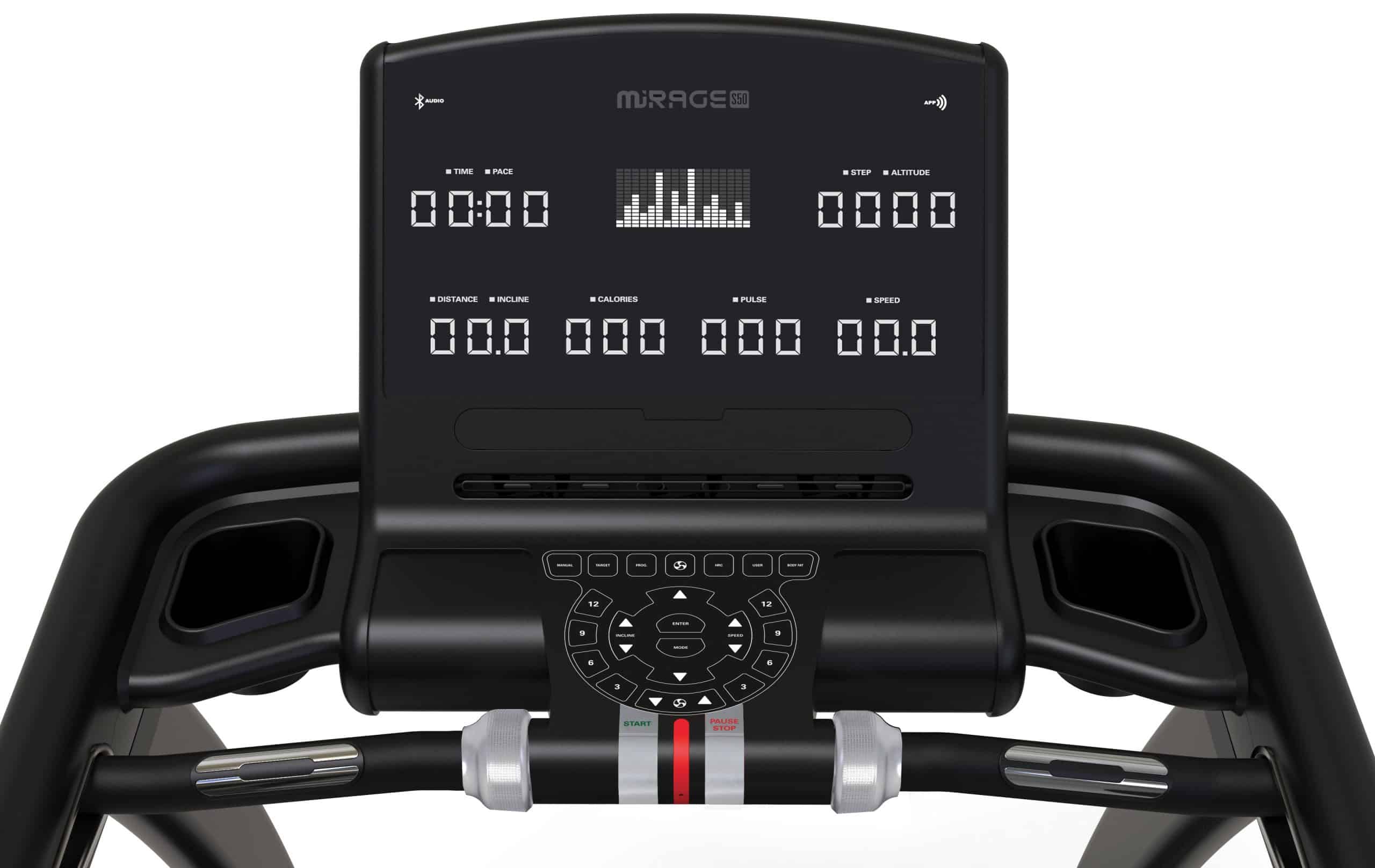 Il Mirage S50 mette a disposizione 24 programmi preimpostati con variazione automatica di velocità e inclinazione, oltre a programmi HRC, User, Target e Bodyfat, per allenamenti sempre stimolanti e personalizzati. Include anche un ventilatore a 3 velocità regolabili per un maggiore comfort.