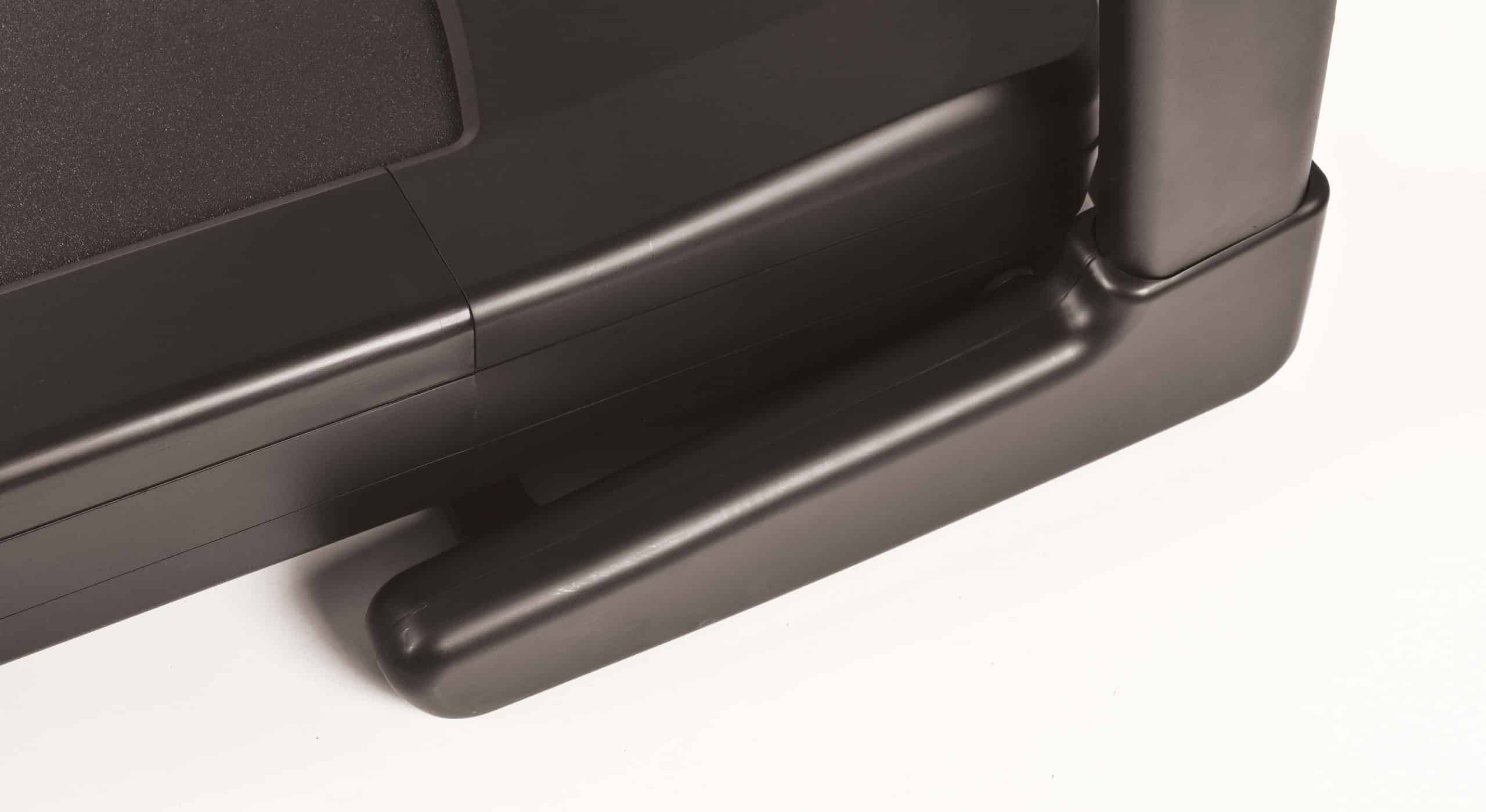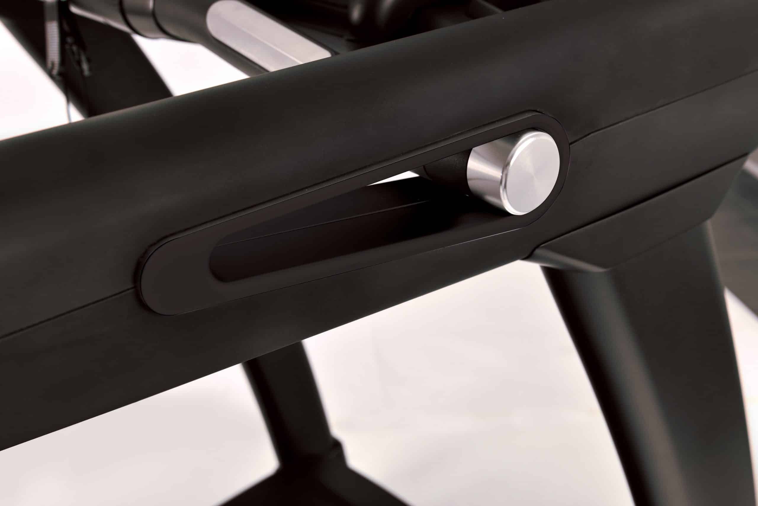 Robusto e stabile, con un peso di 106 kg, supporta utenti fino a 150 kg. Dopo l’allenamento, il sistema di chiusura salvaspazio e le ruote di trasporto consentono di riporlo facilmente. La garanzia è di 3 anni sul motore e 2 anni sulle restanti parti.